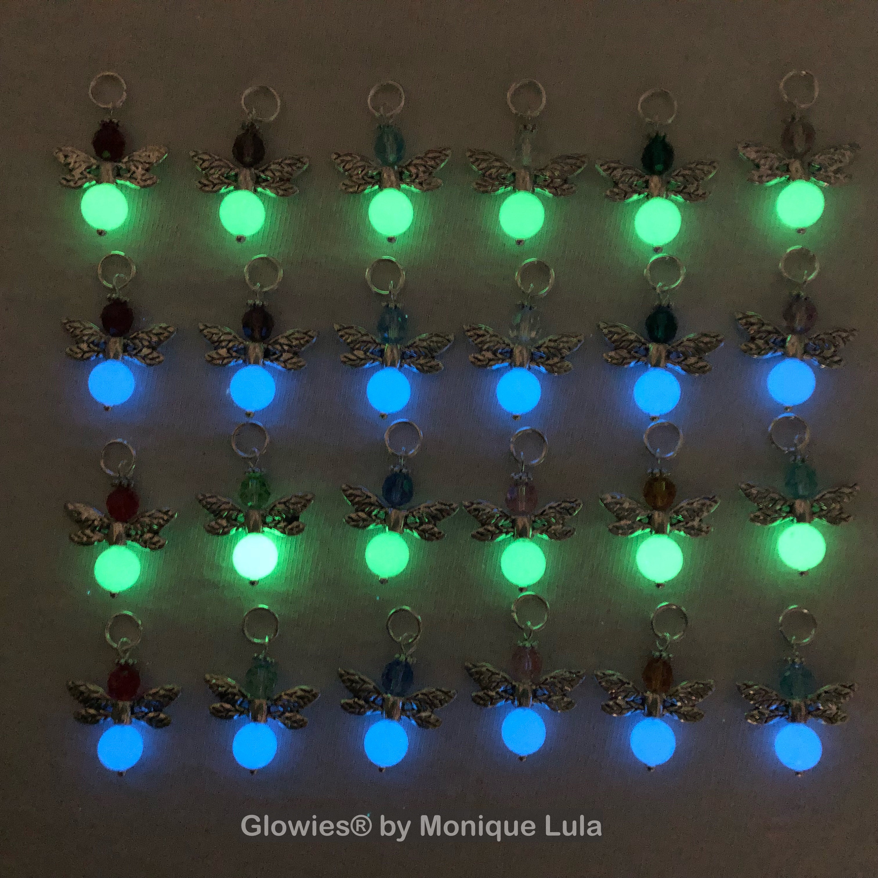 These are so cute. One inch little firefly, hand made with glass and crystal bead in your choice of birthstone color. Pick Green or Blue for the glow in the dark color. Hand wired secure and so magical to wear.